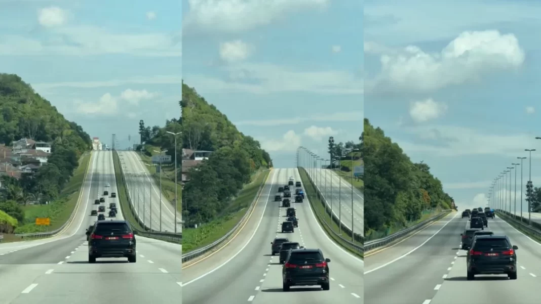 Rakaman itu merakam konvoi presiden yang bergerak di atas apa yang kelihatan seperti Lebuhraya Maju (MEX), mempamerkan tanda lorong yang jelas, permukaan jalan yang diselenggara dengan baik, dan persekitaran landskap.